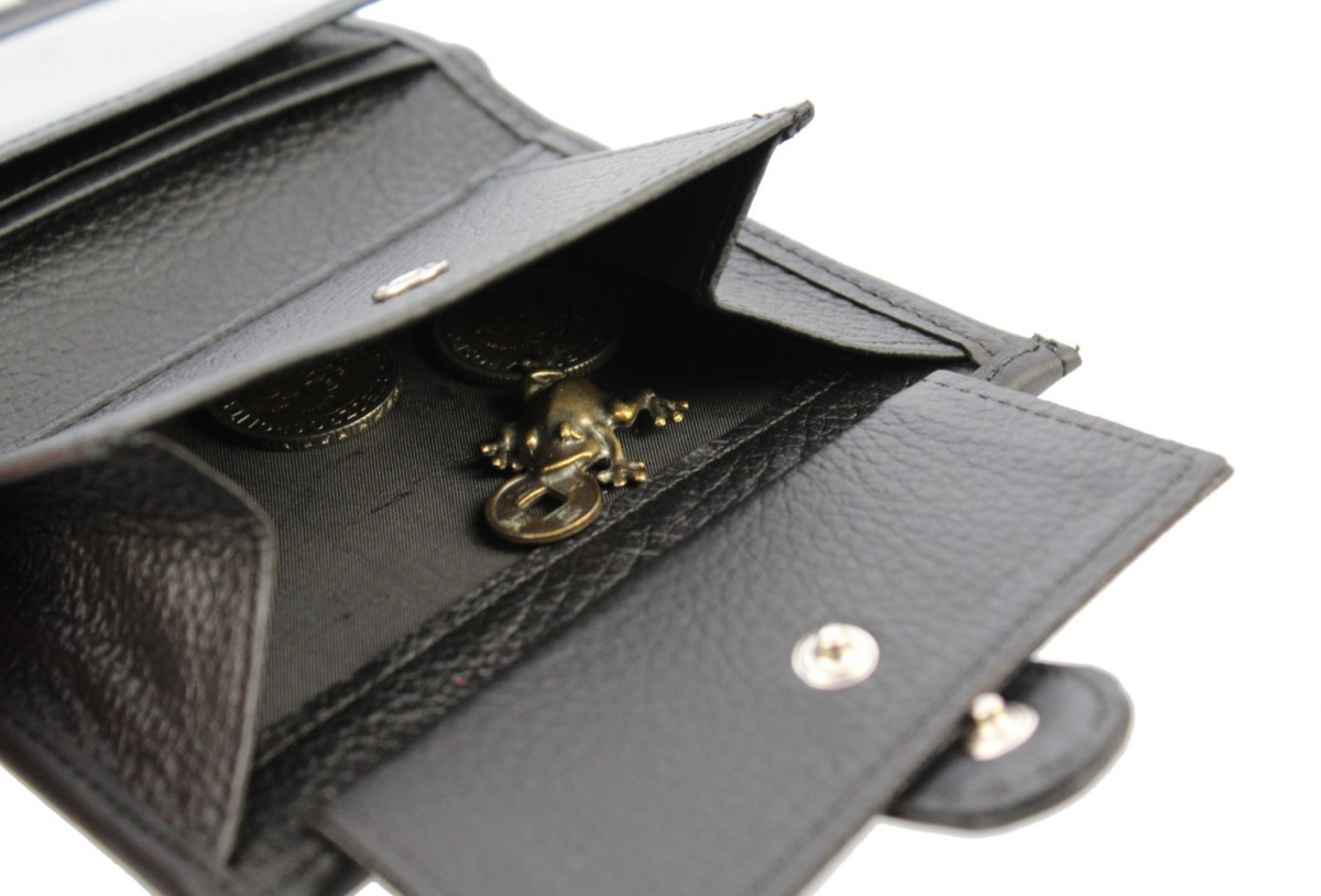 - Praktyczna kieszeń na bilon, zapinana na nap, bez prześwitów w dolnych rogach - co zapobiega gubieniu zawartości; kieszeń odchyla się na tyle daleko, że nie ma problemów z wyciąganiem bilonu,