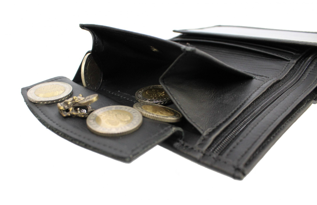 - Praktyczna kieszeń na bilon, zapinana na nap, bez prześwitów w dolnych rogach - co zapobiega gubieniu zawartości; kieszeń odchyla się na tyle daleko, że nie ma problemów z wyciąganiem bilonu,