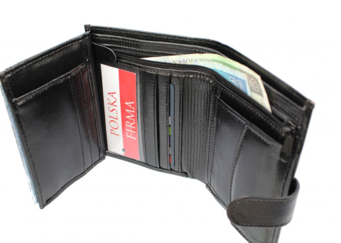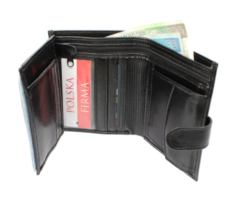 Portfel Męski SARA (PL) Skóra Licowa Duży Pionowy Z Zapięciem Jedno Skrzydełko Poziomy Suwak P1J