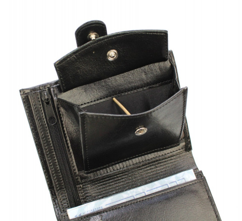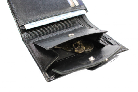 - Praktyczna kieszeń na bilon zapinana na nap, bez prześwitów w dolnych rogach - co zapobiega gubieniu zawartości; kieszeń odchyla się na tyle daleko, że nie ma problemów z wyciąganiem bilonu,