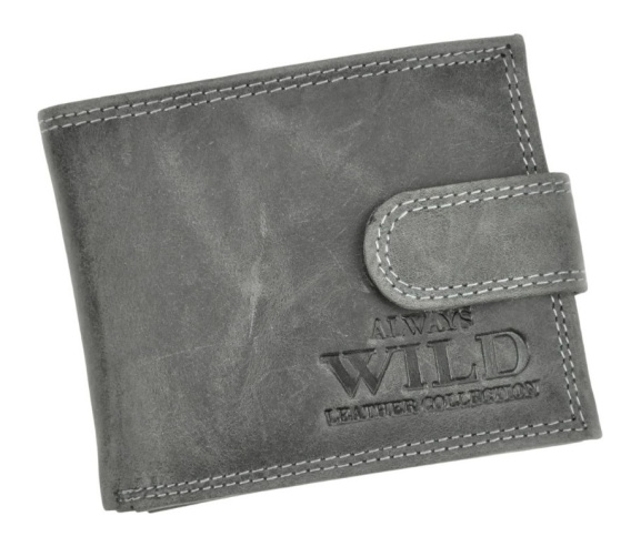 Portfel Męski Skórzany ALWAYS WILD Skóra Licowa Mały Poziomy Z Zapięciem RFID N0035L-CHM/8724 CZARNY 10,5 x 9 x 2 [cm]