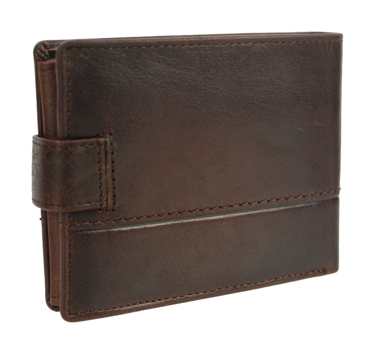 - Portfel zapinany jest na zapinkę na nap, dzięki czemu nie otworzy nam się w kieszeniu a dokumenty nie ulegną przemieszczeniu