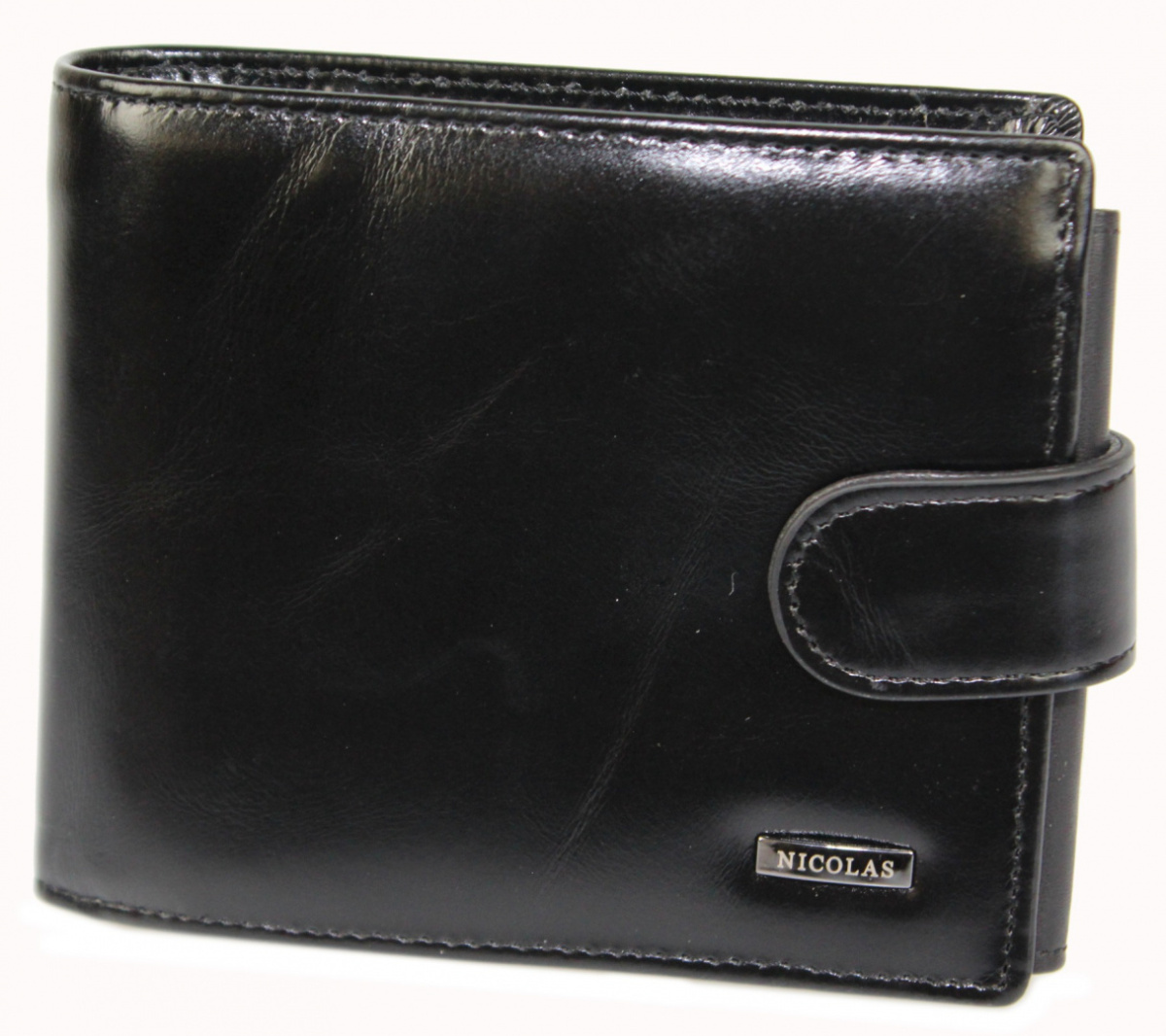 Portfel Męski Skórzany NICOLAS Skóra Licowa Poziomy Mały Z Zapięciem Dwa Skrzydełka Poziomy Suwak 36003-057-01