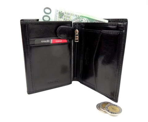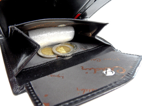 - Duża praktyczna kieszeń na bilon, zapinana na nap, bez prześwitów w dolnych rogach - co zapobiega gubieniu zawartości; kieszeń odchyla się na tyle daleko, że nie ma problemów z wyciąganiem bilonu,