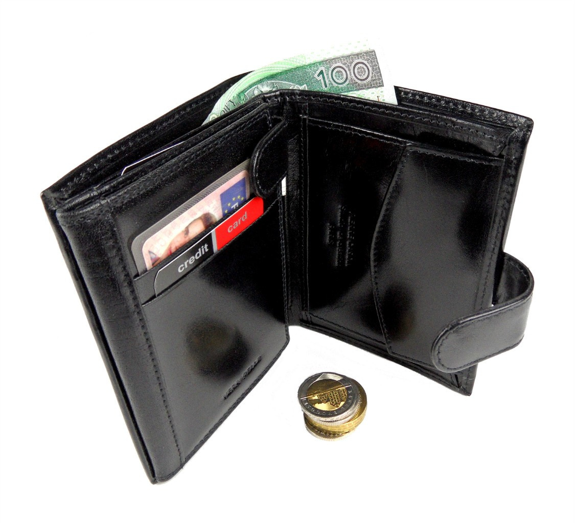 • Duża praktyczna kieszeń na bilon, zapinana na nap, bez prześwitów w dolnych rogach - co zapobiega gubieniu zawartości; kieszeń odchyla się na tyle daleko, że nie ma problemów z wyciąganiem bilonu,