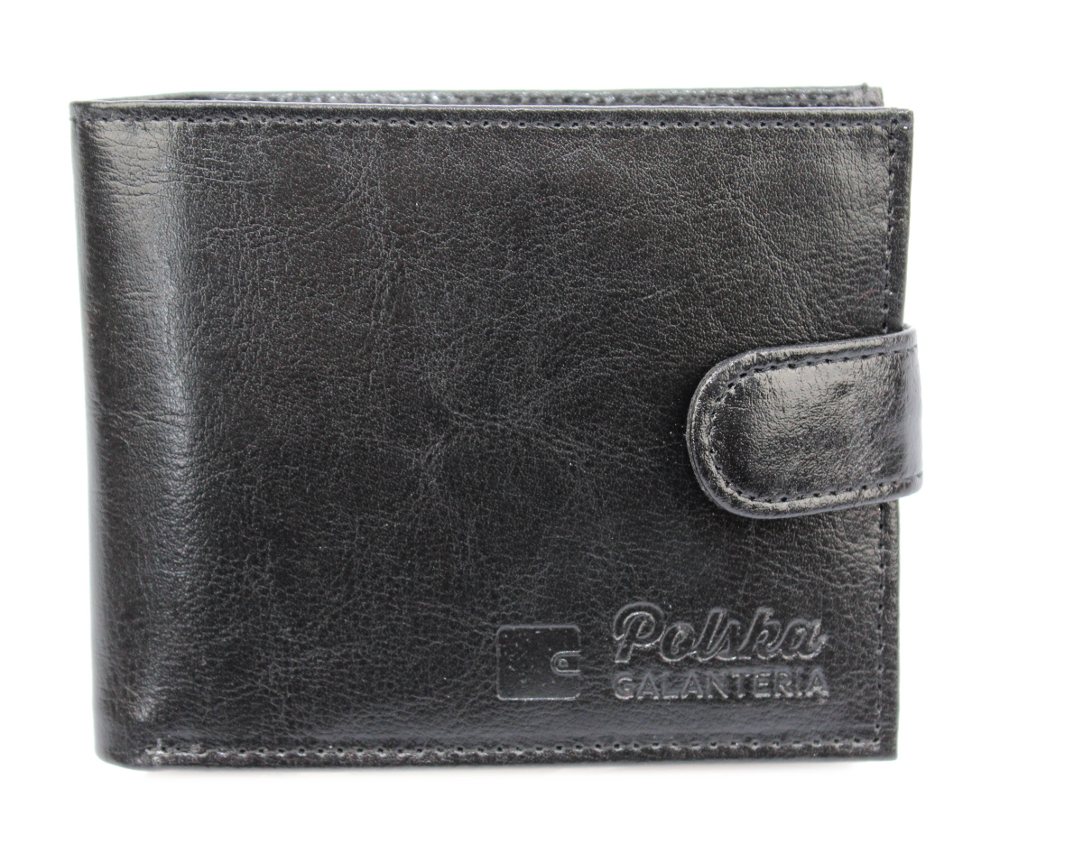 Portfel Męski Skórzany PolskaGalanteria Skóra Cielęca Duży Poziomy Z Zapięciem Jedno Skrzydełko Do Góry KP SKL1/1