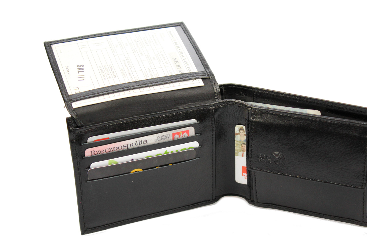 Cenisz sobie bezpieczeństwo i wysoką jakość wyrobów galanteryjnych? Zamów zatem portfel męski będący częścią kolekcji własnej marki PolskaGalanteria. Model wykonany został z należytą starannością w oparciu o wysokiej klasy skórę naturalną i klasyczną stylistykę, niezwykle modną wśród nowoczesnych mężczyzn. Perfekcyjnie rozplanowana przestrzeń wewnątrz została dodatkowo wzbogacona o zabezpieczenie RFID, które uniemożliwia zeskanowanie kart płatniczych przez niepowołane osoby. Zadbaj o bezpieczeństwo swoich pieniędzy z innowacyjnym portfelem, który swobodnie możesz nosić w kieszeni spodni. W wyrobie oprócz dokumentów formatu ID ulokujesz także dowód rejestracyjny pojazdu.