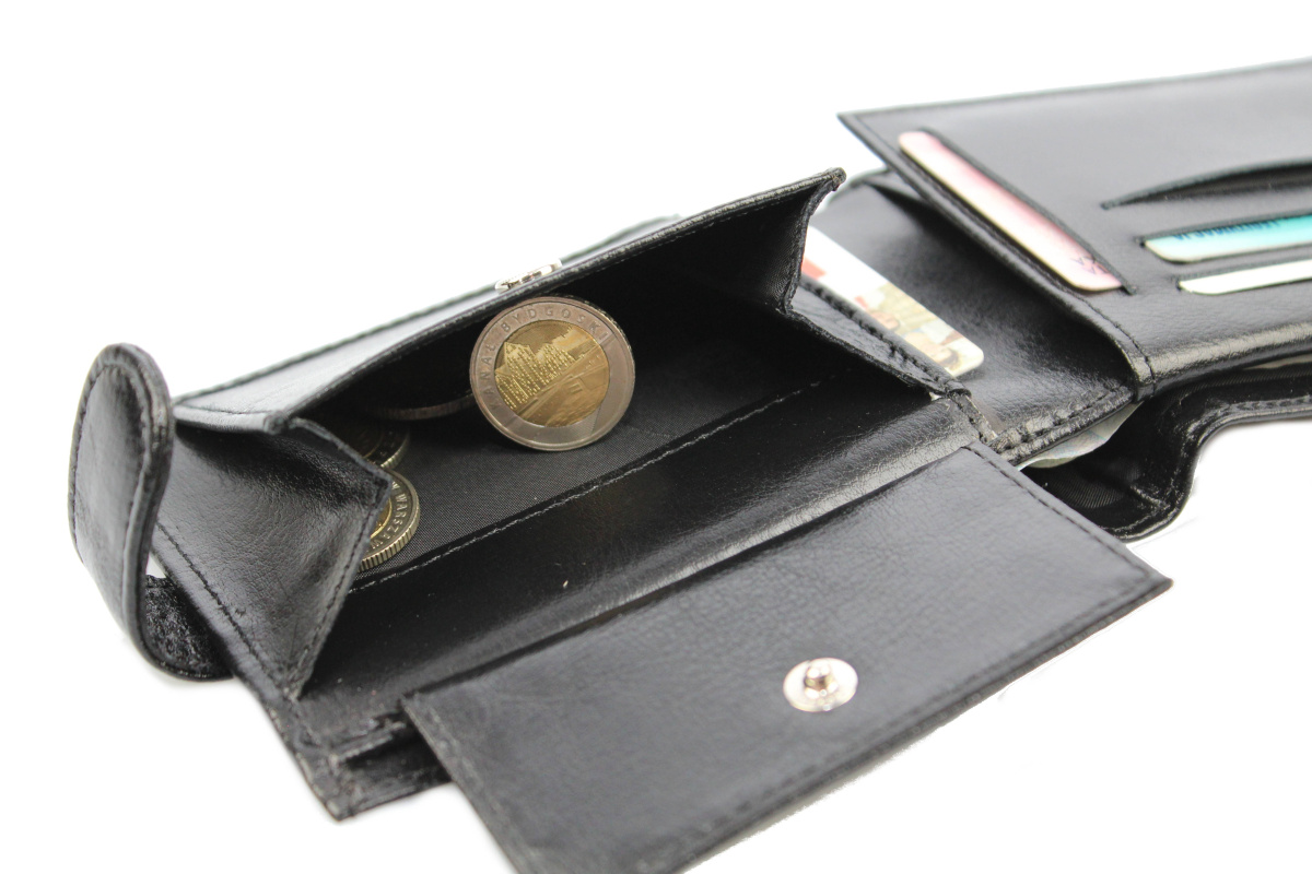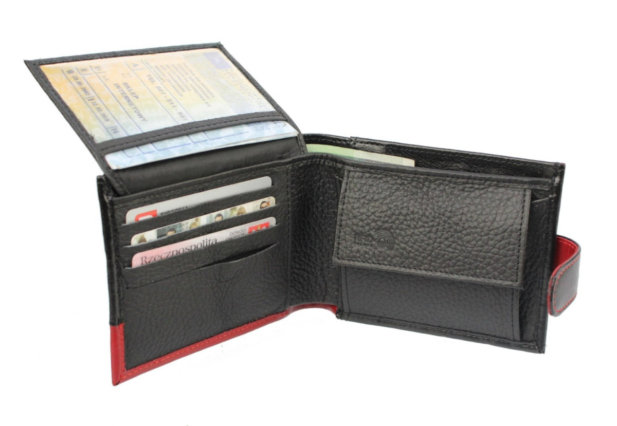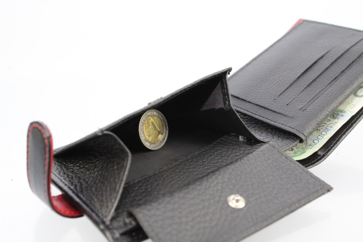 - Duża praktyczna kieszeń na bilon, zapinana na nap, bez prześwitów w dolnych rogach - co zapobiega gubieniu zawartości; kieszeń odchyla się na tyle daleko, że nie ma problemów z wyciąganiem bilonu,