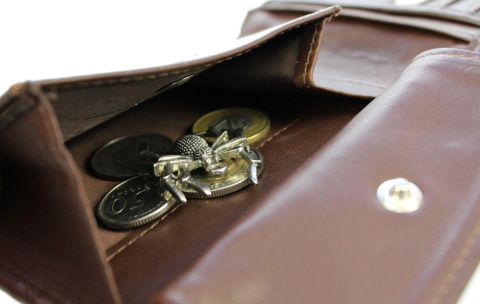 - duża praktyczna kieszeń na bilon, zapinana na nap, bez prześwitów w dolnych rogach - co zapobiega gubieniu zawartości; kieszeń odchyla się na tyle daleko, że nie ma problemów z wyciąganiem bilonu