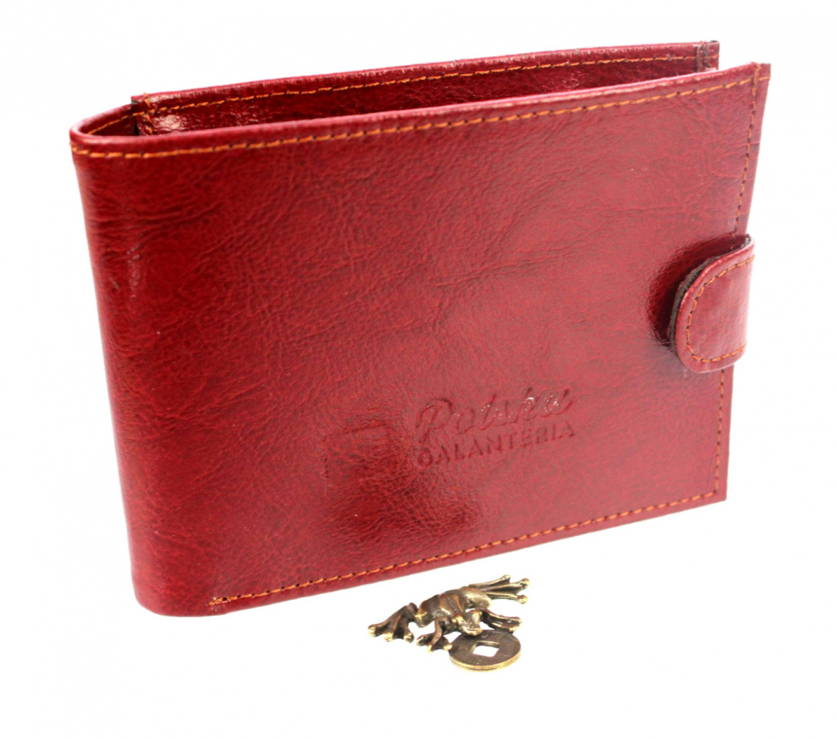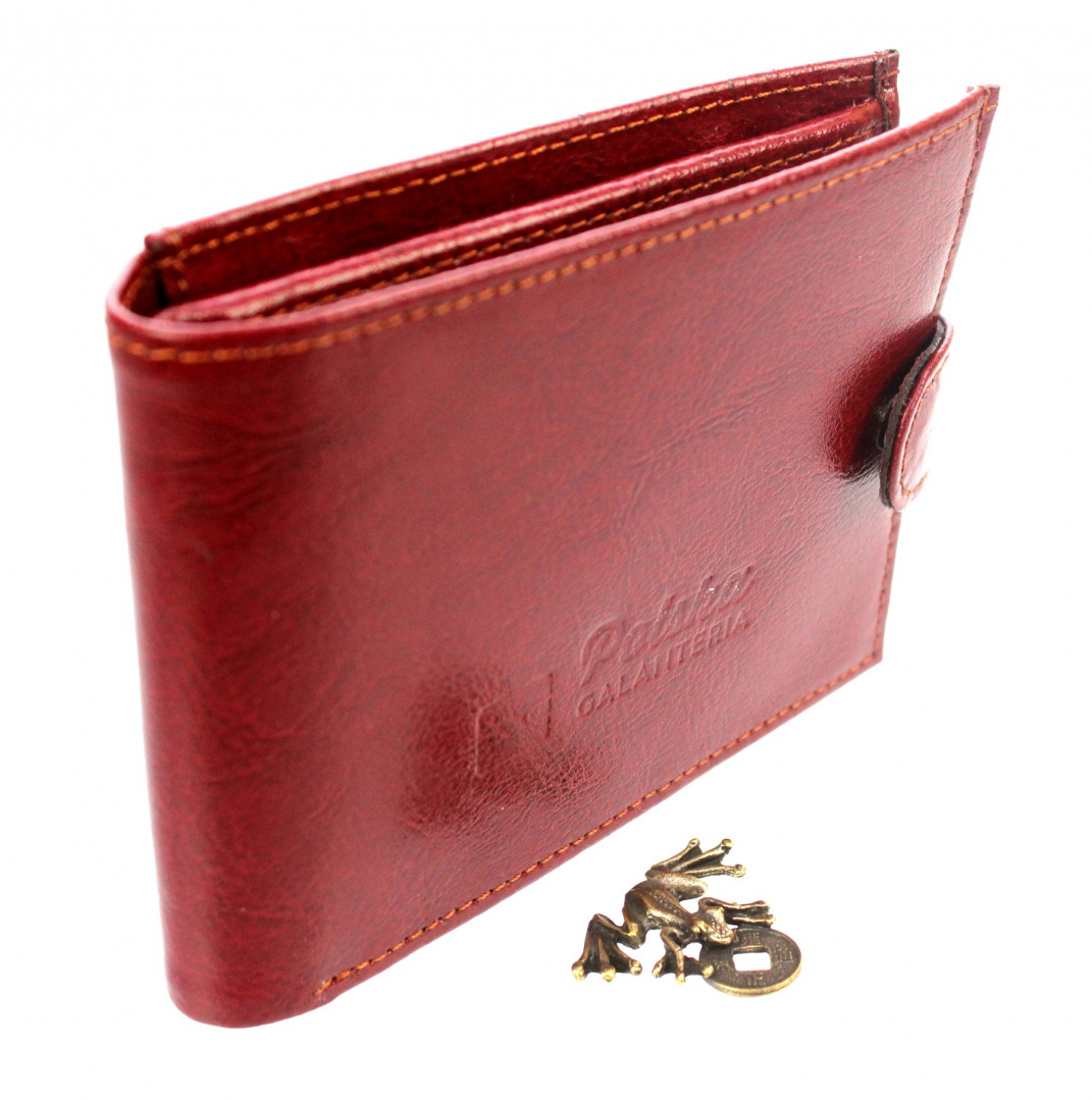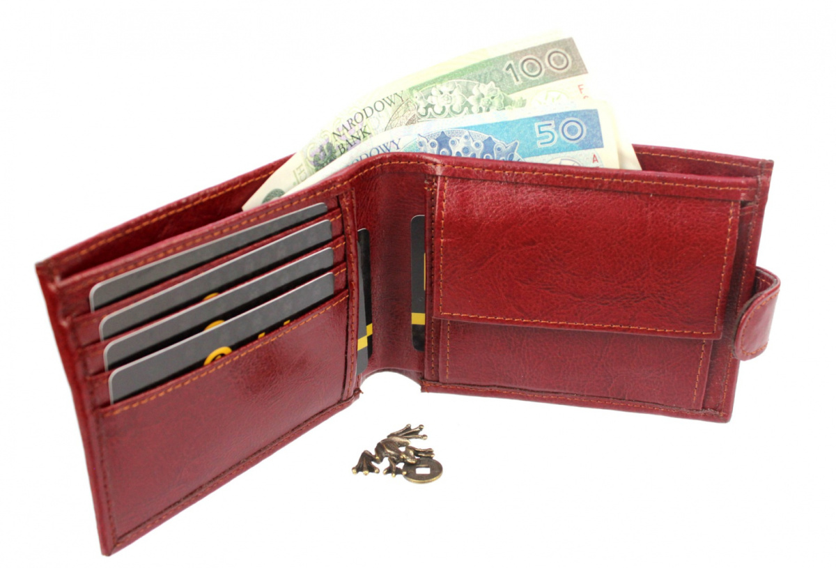 Portfel Męski Skórzany PolskaGalanteria Skóra Licowa Duży Poziomy Z Zapięciem Bordowy