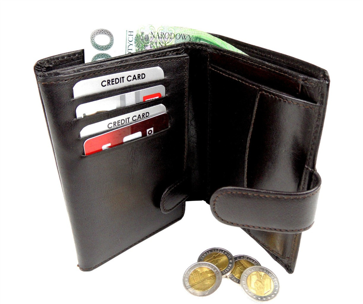 - duża praktyczna kieszeń na bilon, zapinana na nap, bez prześwitów w dolnych rogach - co zapobiega gubieniu zawartości; kieszeń odchyla się na tyle daleko, że nie ma problemów z wyciąganiem bilonu