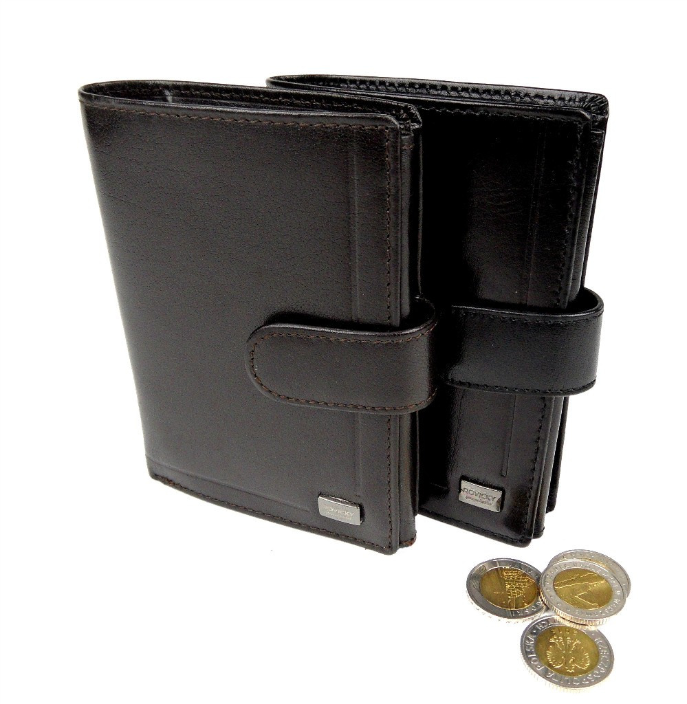 Portfel Męski Skórzany ROVICKY Skóra Licowa Duży Pionowy Z Zapięciem Dwa Listki Zapinka Wewnątrz