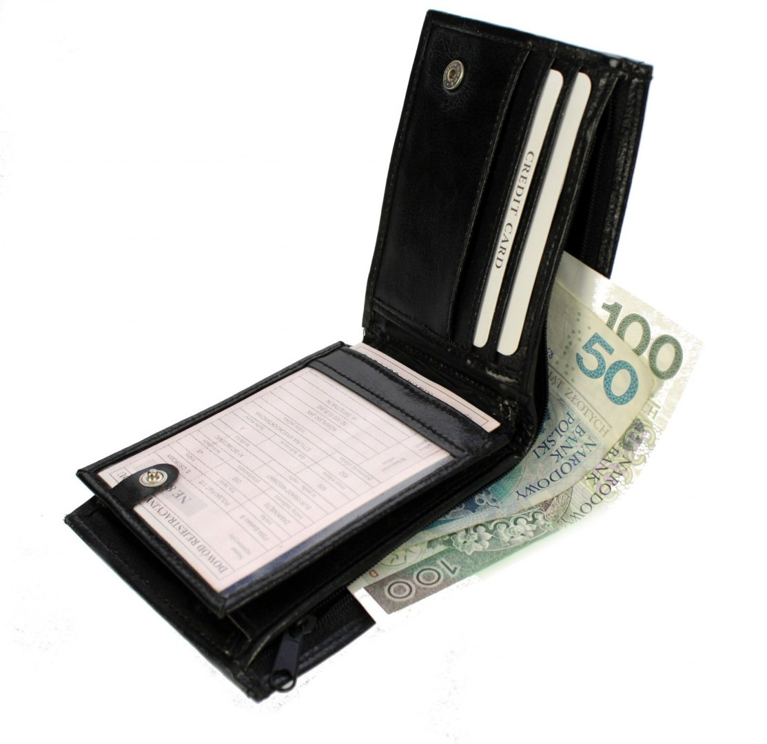 Skórzany portfel męski wykonany ze skóry naturalnej, licowej, wysokiej jakości. Jest ona miła, miękka i ciepła w dotyku. Wzór ten to jeden z najlepszych i najczęściej używanych modeli portfeli męskich.