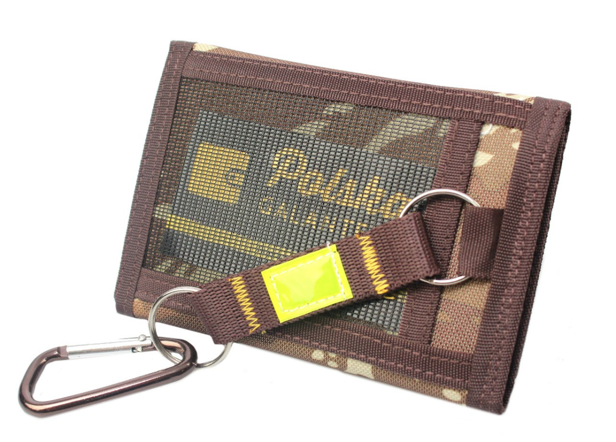 - z tyłu portfela znajduje się dodatkowy schowek z siatką oraz przywieszka z karabinkiem z naszytym materiałem odblaskowym
