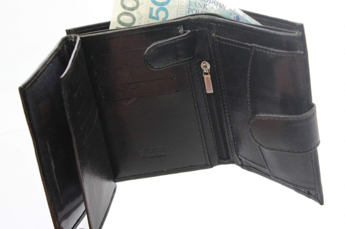 Skórzany portfel męski to podstawowe wyposażenie każdego eleganckiego mężczyzny. W ofercie naszego sklepu znajdziesz różnego rodzaju portfele męskie, które z pewnością spełnią oczekiwania nawet najbardziej wymagających osób. Jednym z dostępnych modeli jest wysokiej jakości portfel marki Elkor, który charakteryzuje się prostym, eleganckim wzornictwem i starannym wykonaniem. Duży, pionowy portfel z naturalnej skóry licowej jest miękki w dotyku, niezwykle trwały i odporny na zarysowania. Portfel Męski ELKOR EL125 to model o wymiarach 10 x 13 cm, dzięki czemu bez trudu zmieści się w kieszeni spodni, marynarki, jak również w każdej męskiej torbie czy saszetce do ręki.