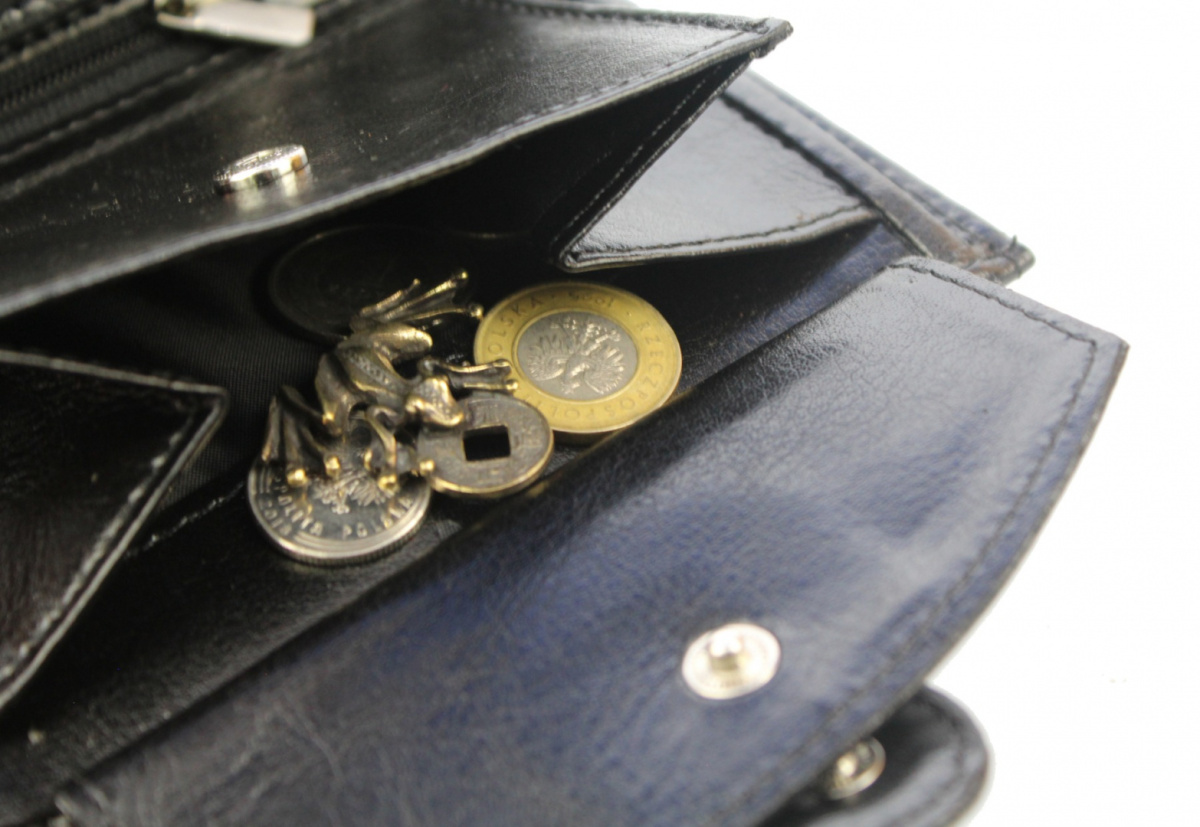 duża praktyczna kieszeń na bilon, zapinana na nap, bez prześwitów w dolnych rogach - co zapobiega gubieniu zawartości; kieszeń odchyla się na tyle daleko, że nie ma problemów z wyciąganiem bilonu,