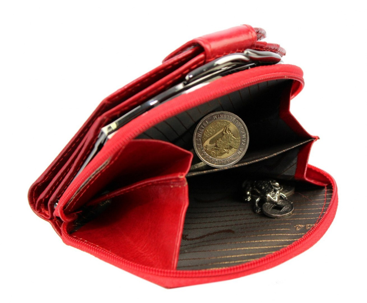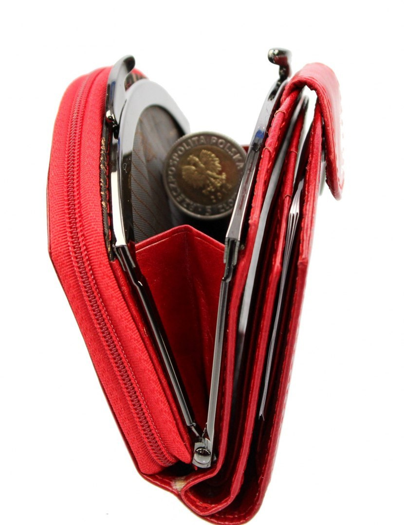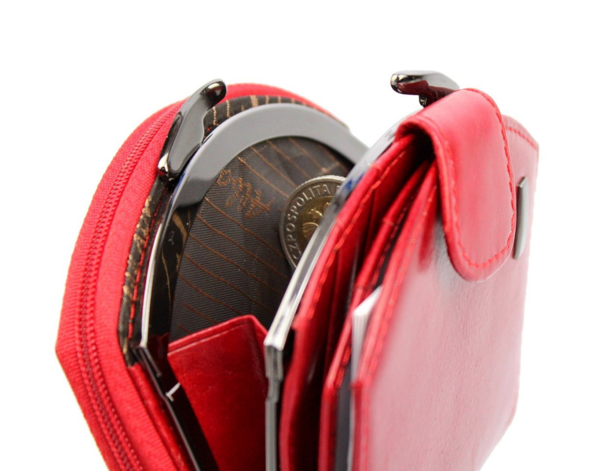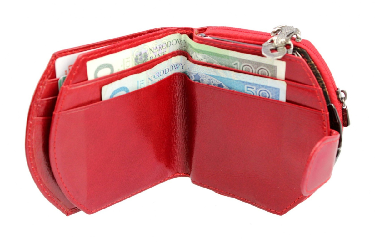 - dwie kieszenie na bilon zapinane jest na suwak oraz zatrzask, otwieraja się na tyle szeroko, aby swobodnie można było wyciągać zawartość,