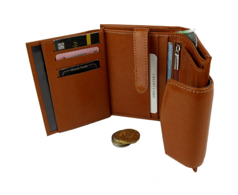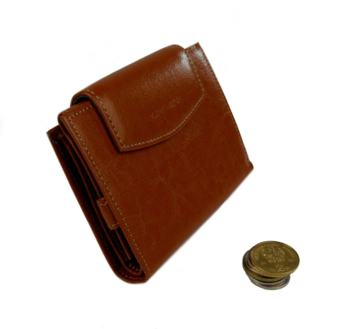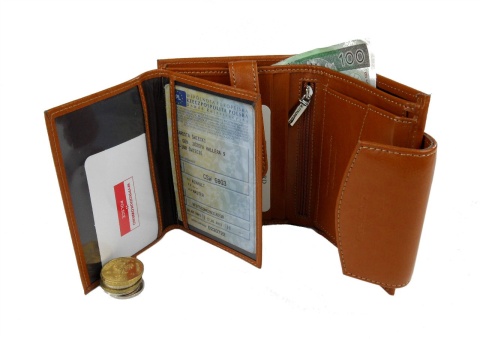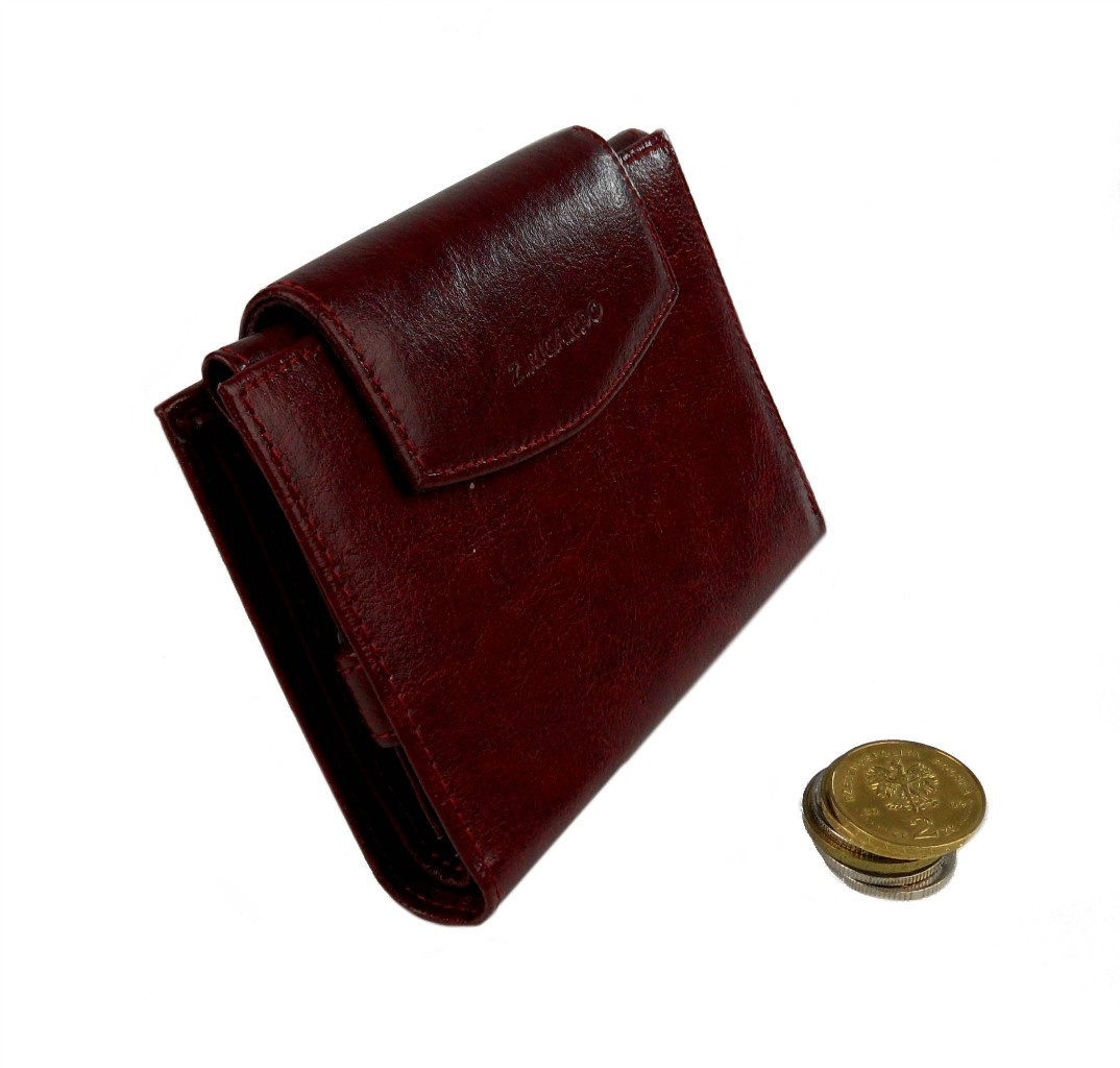 - Duża praktyczna kieszeń na bilon, zapinana na nap, bez prześwitów w dolnych rogach - co zapobiega gubieniu zawartości; kieszeń odchyla się na tyle daleko, że nie ma problemów z wyciąganiem bilonu