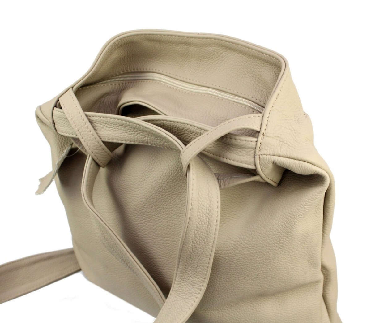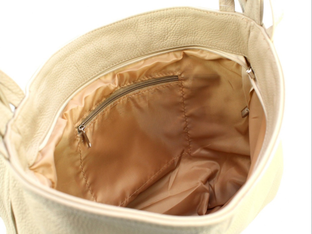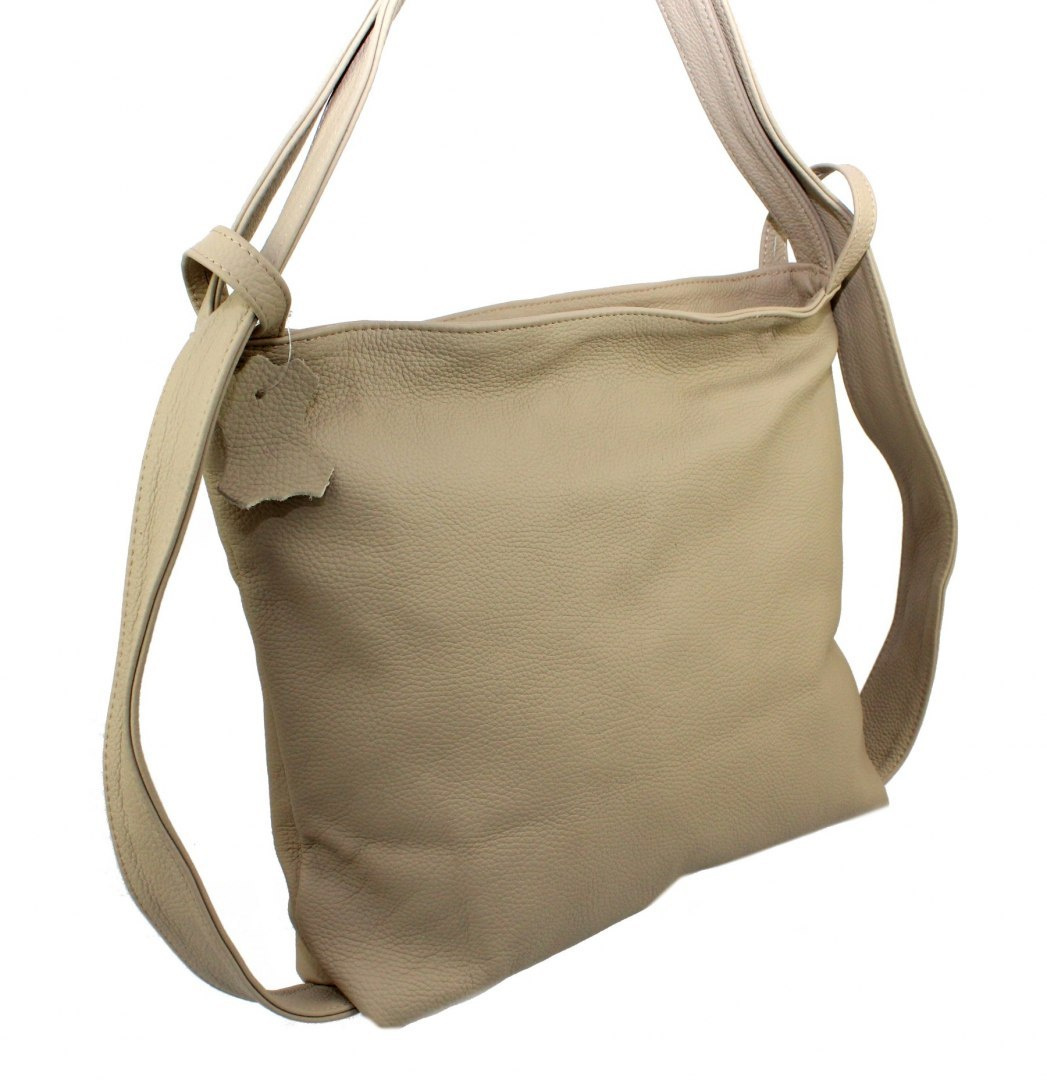Stawiasz na maksymalną funkcjonalność? Model Teresa polskiej marki Magre to damska torebka i plecak skórzany w jednym! Jego formę możesz dostosować do potrzeb danej chwili i do aktualnego stroju. Klasyczny fason i delikatny, beżowy odcień, będą pasowały do ubrań w dowolnym kolorze. Główna komora plecaka zapinana jest na suwak. Prostokątny kształt i spora objętość pozwalają nosić w niej dokumenty o formacie A4. Wewnątrz znajdują się dwie małe kieszenie. Paski torebki są regulowane w zakresie około 65-98 centymetrów. Można trzymać je w dłoni, na ramieniu lub zarzucić na oba ramiona jako plecak. Torebka skórzana wykonana jest z naturalnej skóry licowej, bez klejenia, co zapewnia jej wyjątkową wytrzymałość.