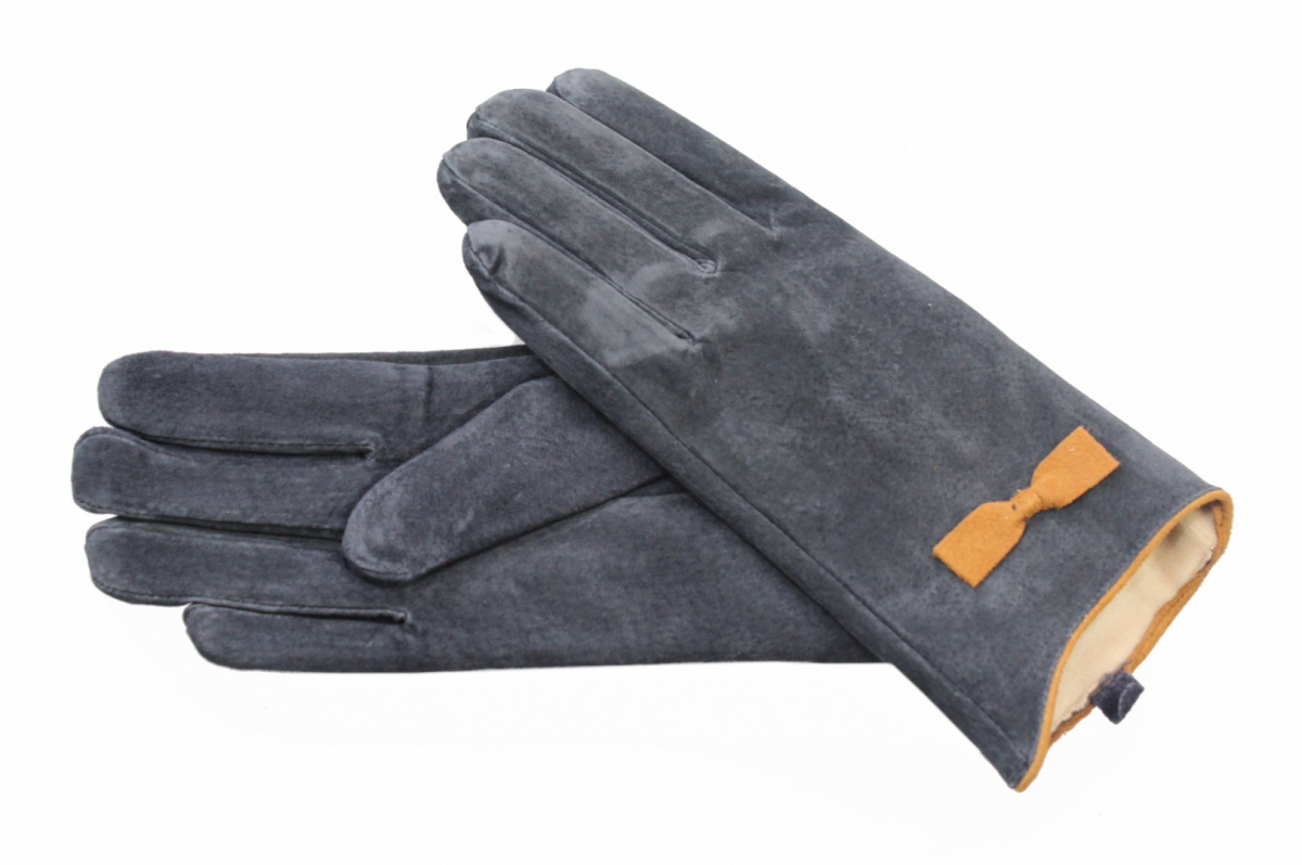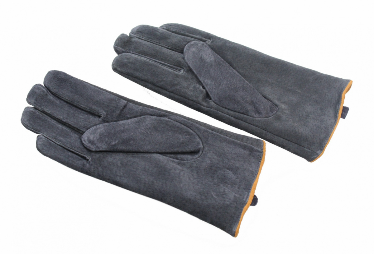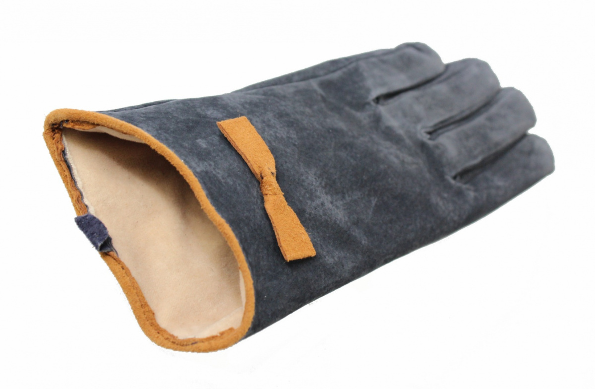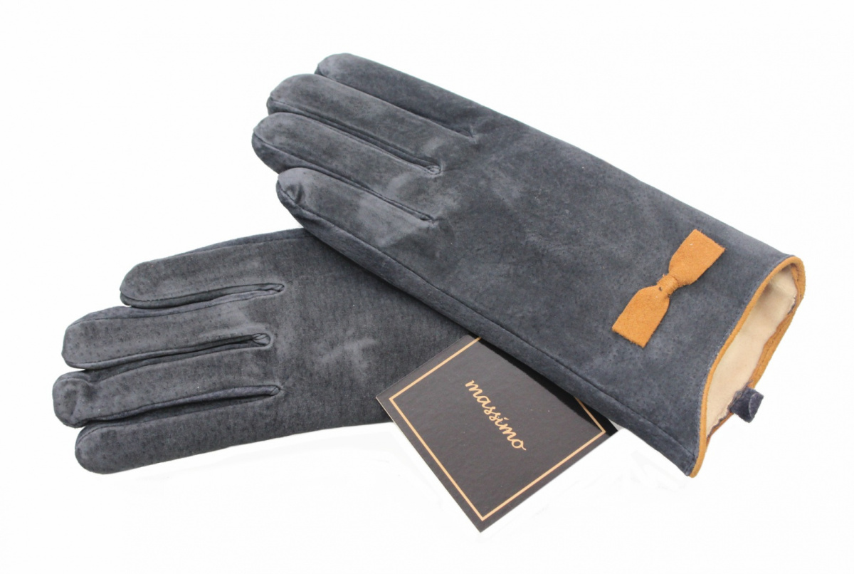 Rękawiczki Skórzane MASSIMO Skóra Naturalna M/L Granatowe Zamszowe