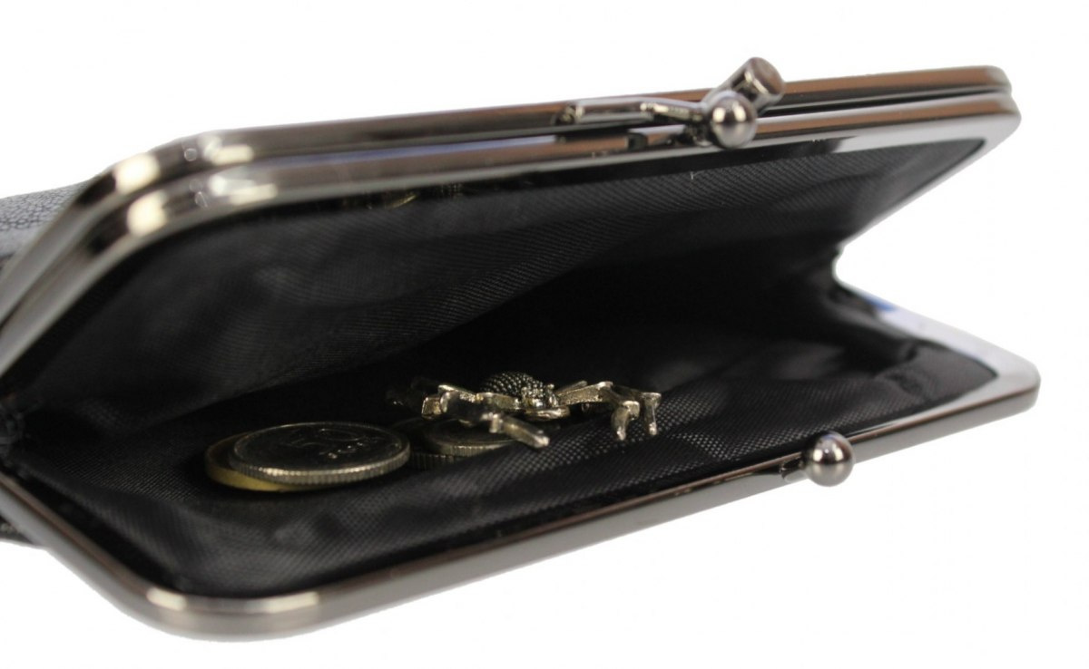 - Całość sakiewki jest otwierana na podwójną, klamerkę po otwarciu której do dyspozycji są dwie główne przegrody oraz dodatkowa mniejsza przegroda zamykana na klamerkę.