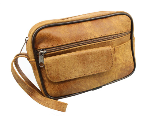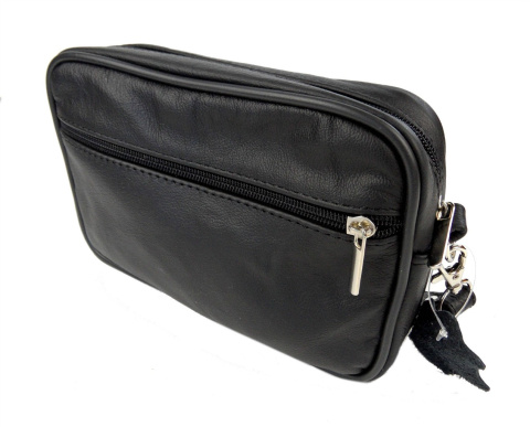 - Na wyposażeniu jest wygodny skórzany uchwyt, dzięki któremu można wygodnie nosić saszetkę w ręce. Uchwyt jest zapinany na zapięcie typu karabinek.