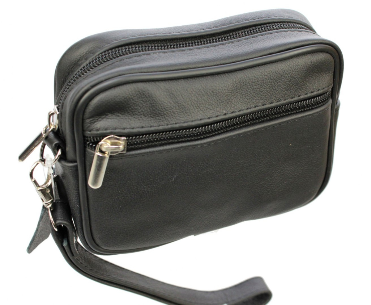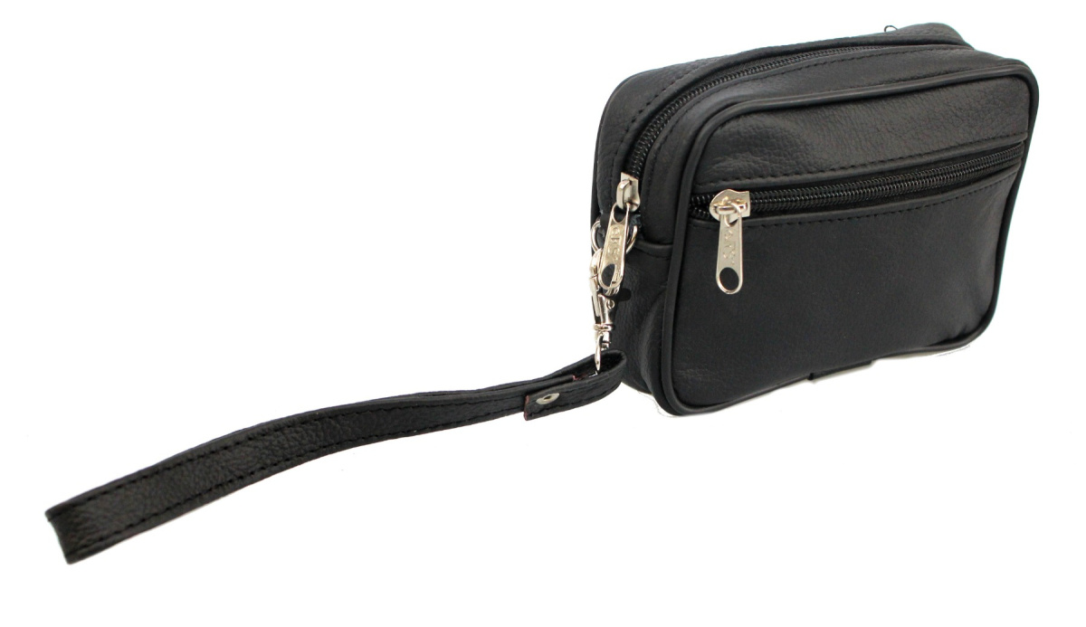 - Na wyposażeniu jest wygodny skórzany uchwyt, dzięki któremu można wygodnie nosić saszetkę w ręce. Uchwyt jest zapinany na zapięcie typu karabinek.