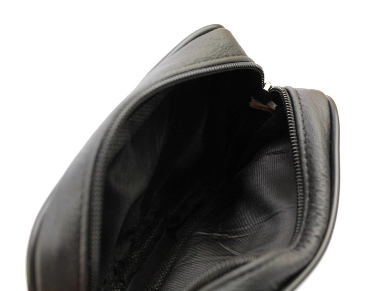 Męska saszetka wykonana w całości ze skóry naturalnej (skóra licowa) z wygodnym uchwytem. Mały model wyposażony jest w jedną komorę oraz dwa, dodatkowe schowki na mniejsze akcesoria.