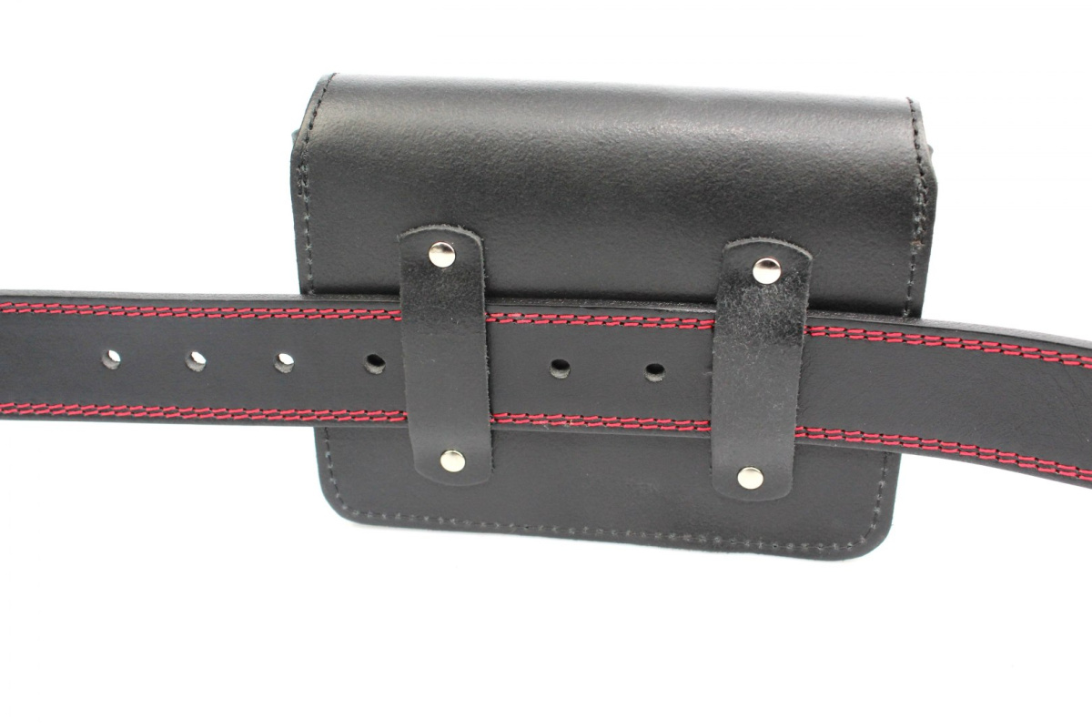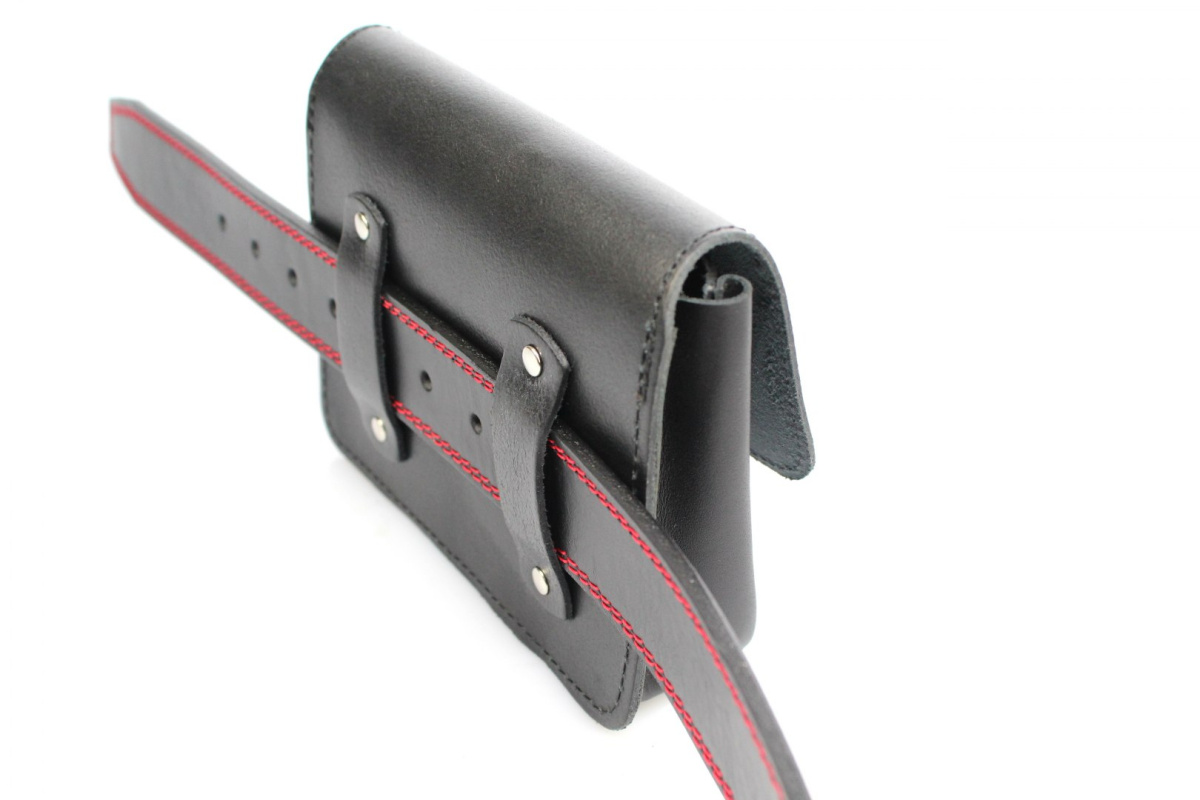 - Z tyłu saszetki są dołączone za pomocą solidnych nitów specjalne szlufki, które umożliwiają noszenie saszetki przy pasku - można założyć do paska o max szerokości 5 cm (nawet paski wojskowe)