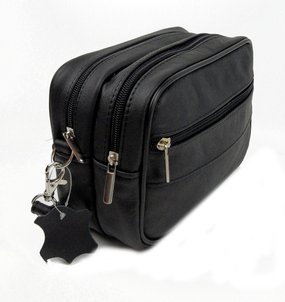 - Na wyposażeniu jest wygodny skórzany uchwyt, dzięki któremu można wygodnie nosić saszetkę w ręce. Uchwyt jest zapinany na zapięcie typu karabinek.