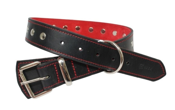 Solidna Obroża Dla Psa Czarna z Czerwoną Nitką Skóra Naturalna 35 mm 56/65 [cm] WIREX (PL)