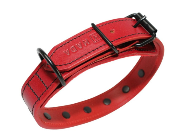 Solidna Obroża Dla Psa Czerwona z Dżetami Czarna Nitka Skóra Naturalna 30 mm 41/51 cm WIREX (PL)