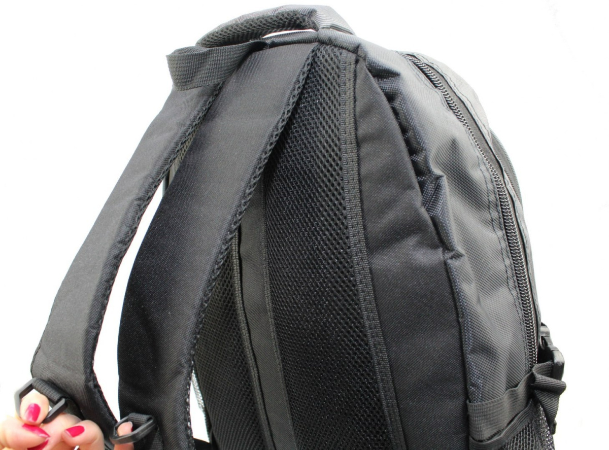 - Tył plecaka jest wykonany z miękkiego i oddychającego materiału, który delikatnie usztywnia tę część tak aby zapewnić komfort noszenia,