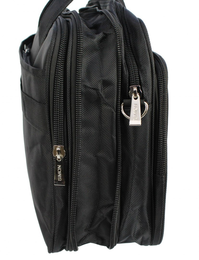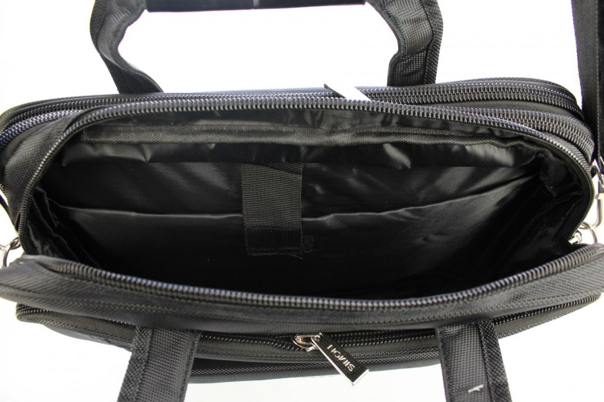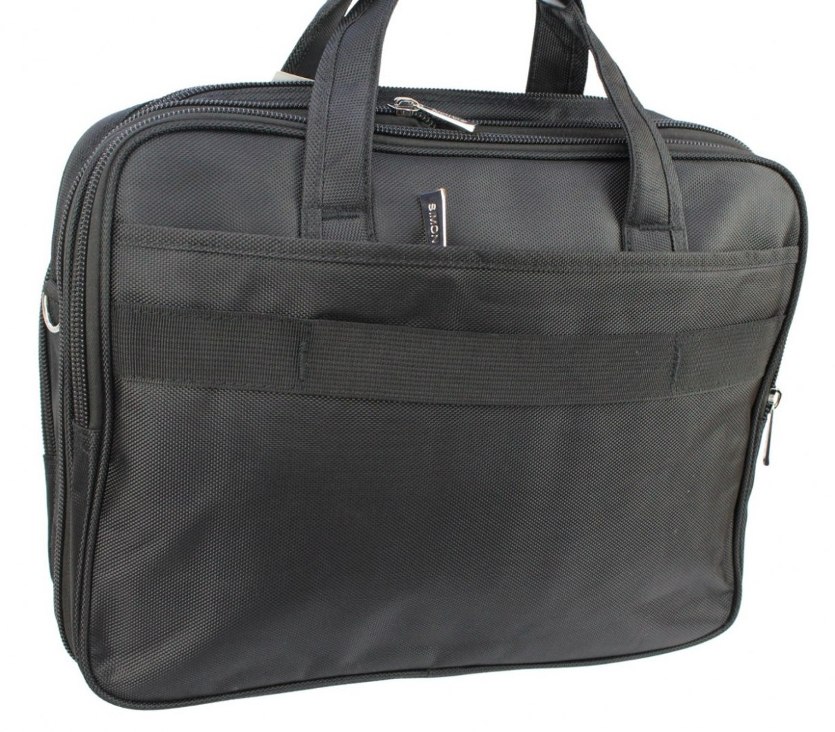 Praktyczna torba na laptopa i dokumenty SIMON 601 została wykonana z najwyższej jakości materiałów. Model ten posiada dużą ilość kieszeni i schowków, dzięki czemu potrafi pomieścić wiele potrzebnych przedmiotów. Składa się ona z dwóch dużych komór - jedna z nich przeznaczona jest na laptopa o przekątnej 16,5" cala. Druga, węższa komora bez problemu pomieści wiele przedmiotów. W środku znajduje się kieszonka o wymiarach 17x24 centymetra, zamykana na suwak. Z przodu torby znajduje się dodatkowa, praktyczna kieszeń. Na niej umieszczony został schowek o wymiarach 20x22 centymetra. W jej wnętrzu producent zamieścił przybornik na drobne akcesoria (długopis, telefon, pieczątka itp.). Na jej tyle znajduje się również praktyczny uchwyt do zamocowania na torbę podróżną. W zestawie dołączony jest regulowany pasek. Model ten ma możliwość poszerzenia spodu torby do szerokości 15 centymetrów.