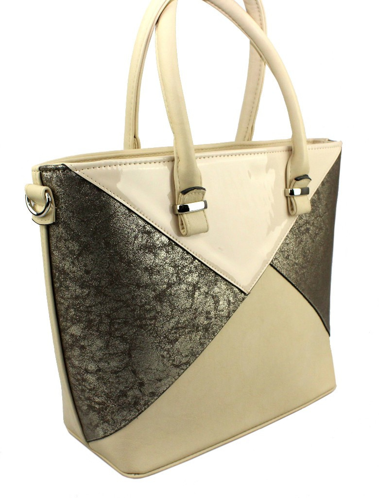 Elegancki stylowy kuferek Nicole, to torebka, obok której nie sposób przejść obojętnie. Niezwykle gustowne połączenie kolorystyki, a także faktury sprawia, że jest ona ozdobą każdej stylizacji. Wykonana jest ze skóry ekologicznej wysokiej jakości, która nie twardnieje oraz jest niezwykle trwała. Obecność ozdobnych wstawek stylizowanych na stare złoto dodaje jej modowego sznytu. Torebka Nicole to kuferek, który został podzielony na dwie części, poprzez dodatkową kieszeń komory głównej zamykanej na suwak, oraz jedną kieszeń zewnętrzną ulokowaną z tyłu torby. Dwie wygodne rączki o długości 45 centymetrów sprawiają, że korzystanie z niej jest niezwykle wygodne. Dodatkowy, dopinany pasek o długości 120 centymetrów, umożliwia dopasowanie sposobu noszenia do swoich preferencji. Wzmocnione dno oraz cała konstrukcja sprawiają, że torebka prezentuje się zawsze bardzo efektownie oraz nie deformuje się.