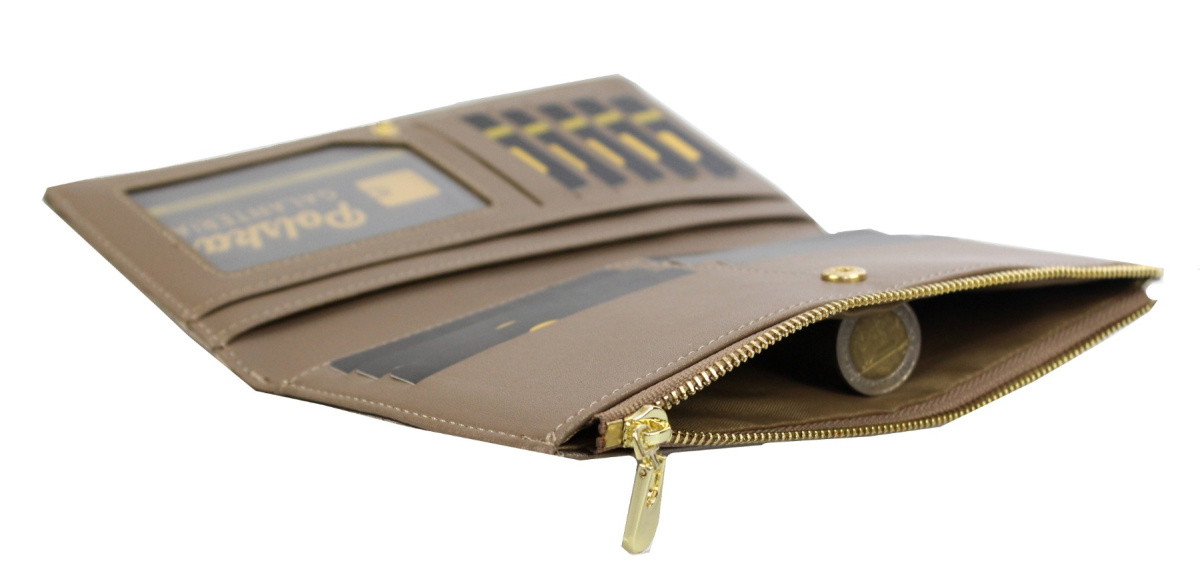 Portfel o dość płaskim a zarazem podłużnym modelu