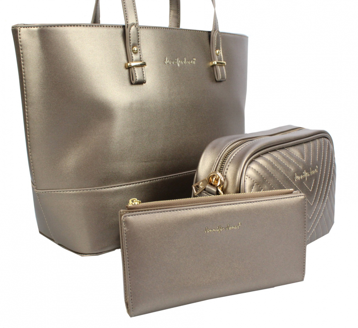 Torebka Skóra Włoska Z Kosmetyczką Oraz Portfelem 3w1 JENNIFER JONES Elegancki Stylowy Kuferek 3140 JASNY BEŻOWY