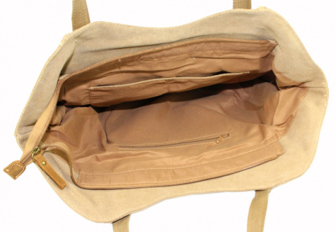 - Wewnątrz torebki znajduje się jedna duża komora w której znajdziemy jeden mały schowek zapinany na suwak oraz dwa mniejsze nie zapinane