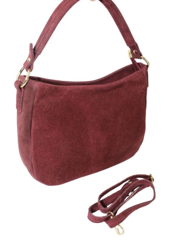 Torebka Skórzana LUKA 24-085 Skóra Naturalna Zamszowa Bordowa 30 x 20 x 9 [cm]