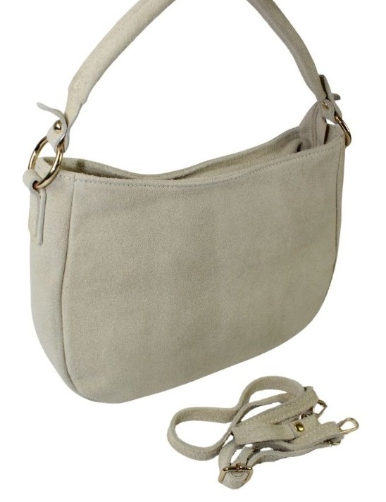 Torebka Skórzana LUKA 24-085 Skóra Naturalna Zamszowa Kremowa 30 x 20 x 9 [cm]