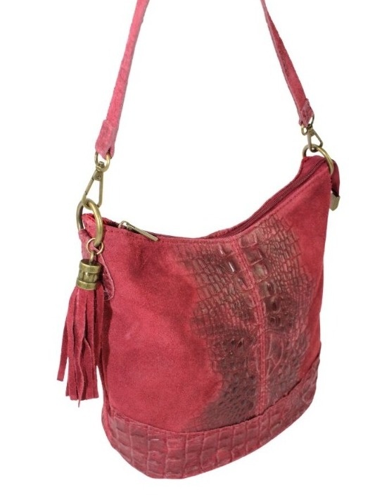 Torebka Skórzana LUKA CROCO MOKKA 26-027 Skóra Naturalna BORDOWA Mozajka 27 x 24 x 16 [cm]