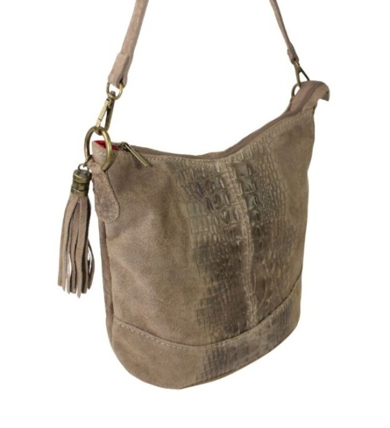 Torebka Skórzana LUKA CROCO MOKKA 26-027 Skóra Naturalna BRĄZOWA Mozajka 27 x 24 x 16 [cm]