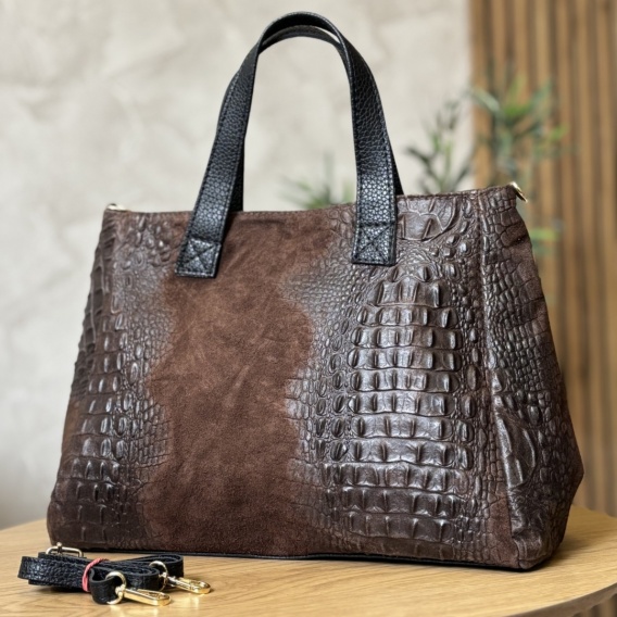 Torebka Skórzana LUKA CROCO Skóra Naturalna CZEKOLADOWA 26-034 38 x 26 x 12 [cm]