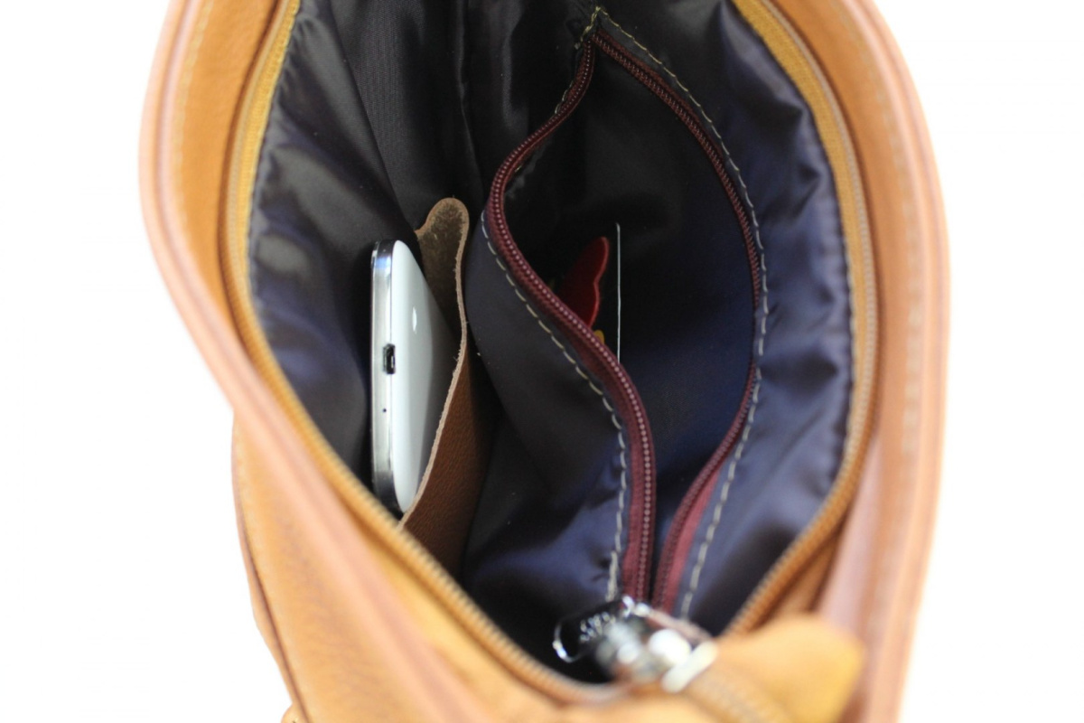 - Wewnątrz torebki znajduje się jedna duża komora z wydzieloną zapinaną na suwak kieszonką na dokumenty oraz kieszonką na telefon komórkowy