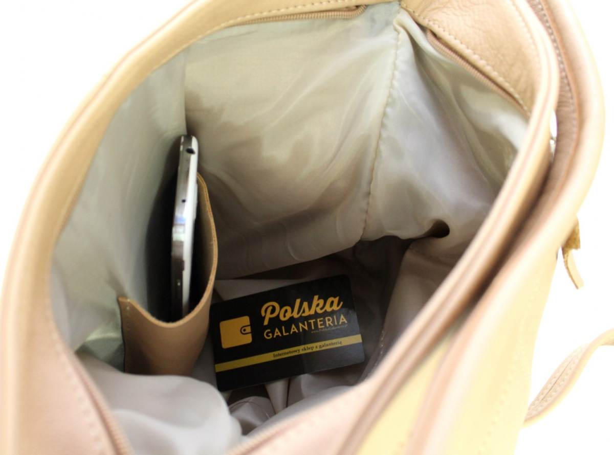 Torebki polskiego producenta MAGRE wyróżnia dbałość o detale przy ich wykonywaniu. Staranne przeszycia oraz naturalna skóra sprawiają, że model AŚKA jest niezwykle efektowny i trwały w trakcie użytkowania. Torebka ta posiada dużą przegrodę zasuwaną na suwak, w której znajdują się dwie małe kieszonki dedykowane na telefon oraz dokumenty. Dodatkowo, wyposażona jest w dwie kieszenie z przodu zasuwane na zamek, który stanowi ozdobę torebki kontrastującą z jej kremowym odcieniem, a także kieszeń z tyłu, także zasuwaną na zamek. Model ten posiada wzmacniane, okrągłe dno oraz dwa paski - jeden krótszy i jeden dłuższy, które umożliwiają dopasowanie długość torebki do wzrostu użytkownika.