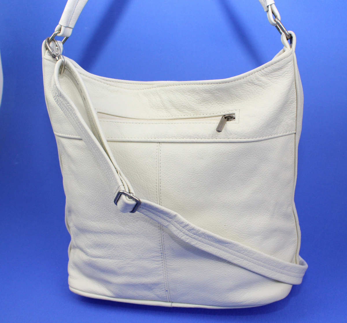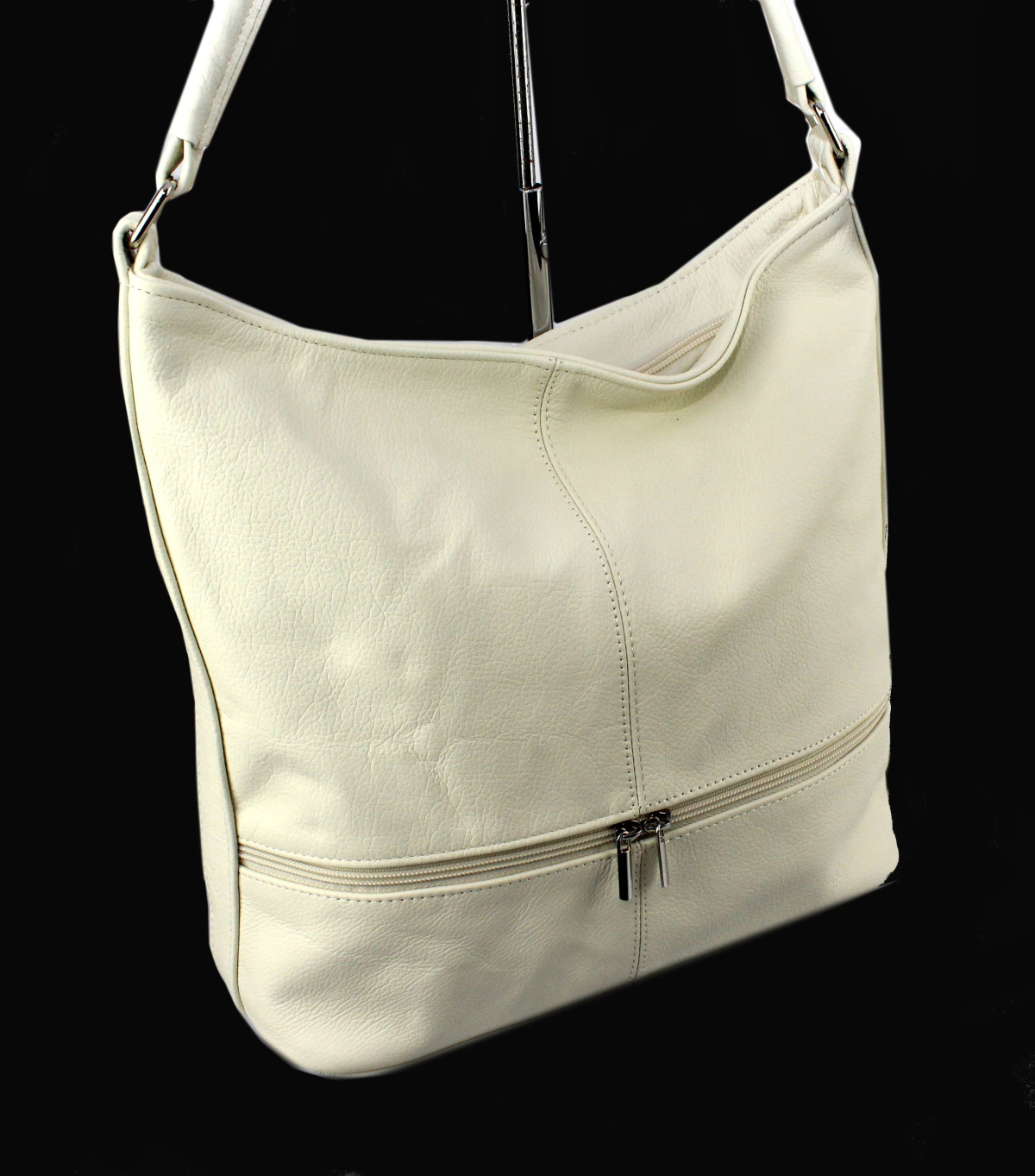 - Z przodu torebki dwa dodatkowe schowki o wymiarach 16 x 7 [cm] zapinane na suwak z wygodnym uchwytem.