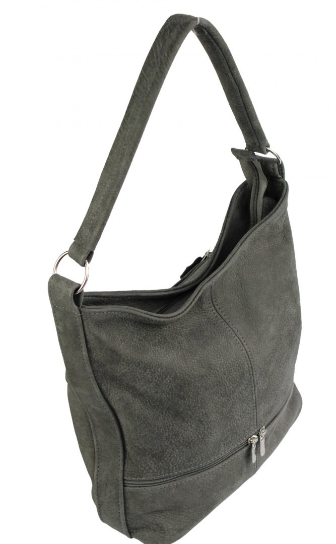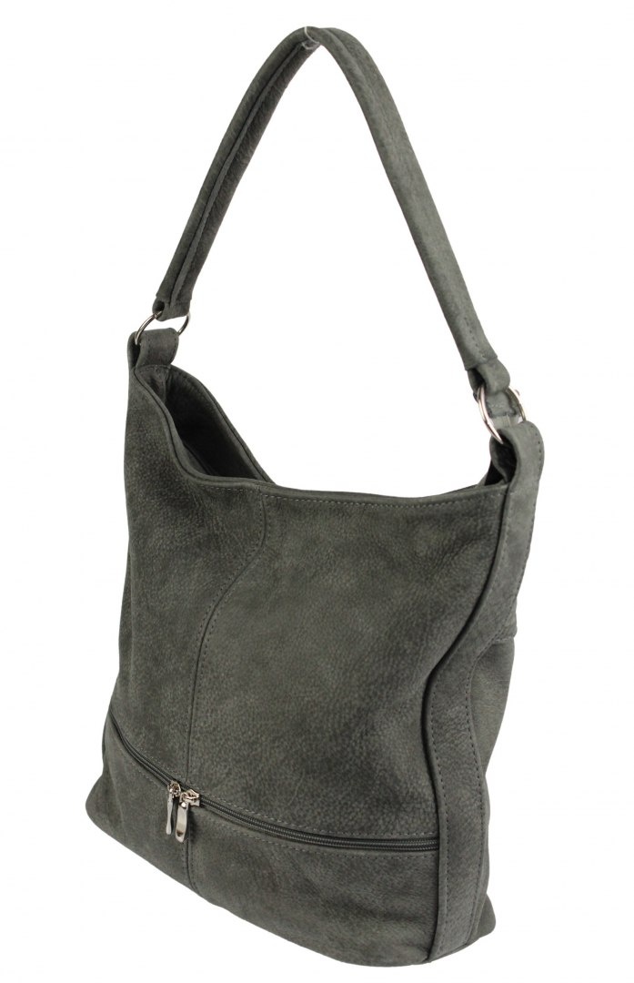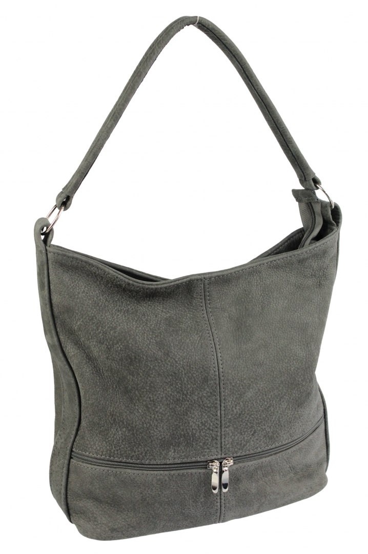 Torebka damska wykonana jest z naturalnej skóry poprzez łączenia szyte, które zapewniają jej niezwykle estetyczny wygląd oraz trwałość w trakcie użytkowania. Wytrzymała podszewka w neutralnym kolorze, umieszczona pod zamkiem głównej przegrody sprawia, że przedmioty przechowywane w torebce, są zawsze na swoim miejscu. Oprócz głównej przegrody, torebka posiada trzy mniejsze kieszenie zapinane na suwak umieszczone na zewnątrz torebki. Ten jasnopopielaty model doskonale komponuje się z codziennymi stylizacjami. Okrągłe wzmocnione dno, pojemność mieszcząca bez problemu format A4 oraz dwa paski, z czego jeden umożliwia regulację w zakresie od 60 do 120 centymetrów. Dzięki temu, torebka jest niezwykle wygodna w trakcie codziennego użytkowania. Jej wymiary to 33 x 28 centymetrów.