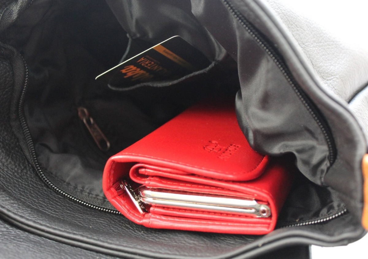 - Główna komora torebki zapinana na solidny magnetyczny nap umieszczony na klapce oraz dodatkowo na suwak