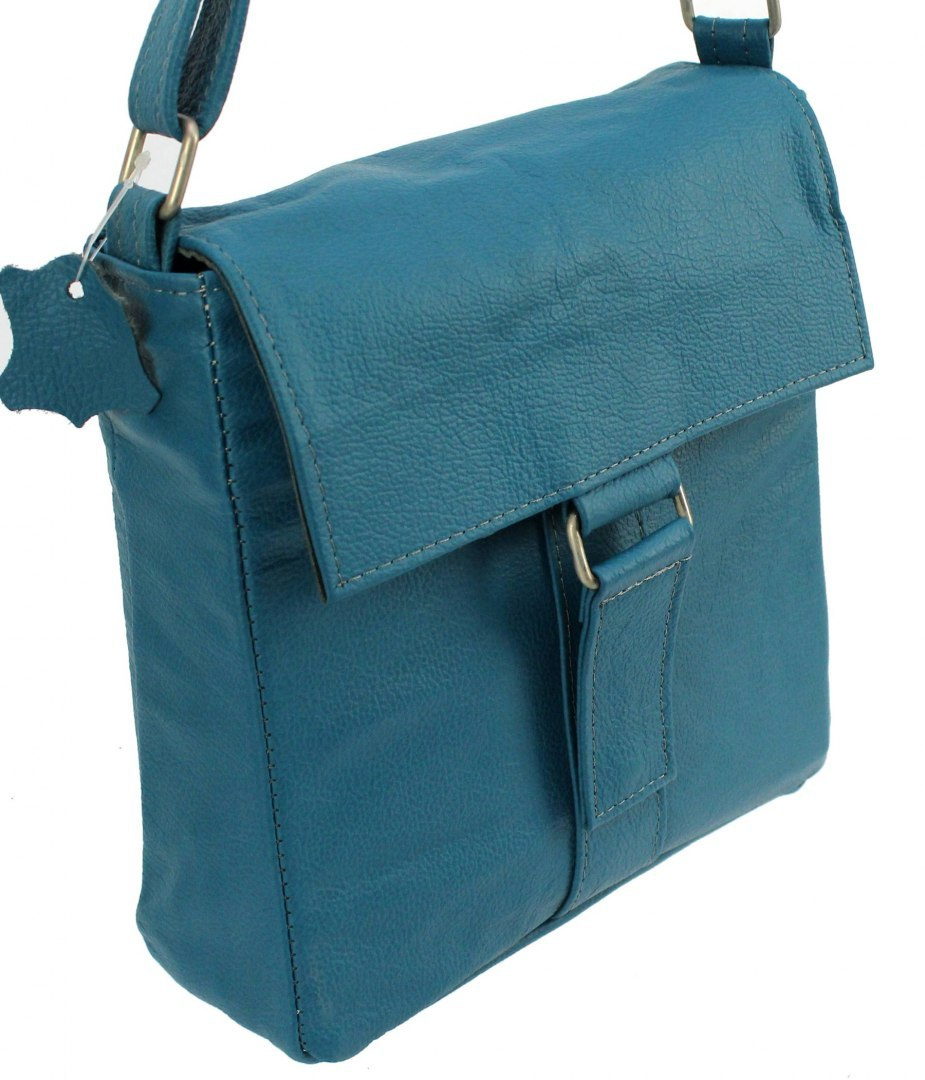 Model Ala z powodzeniem sprawdzi się u każdej kobiety poszukującej torebki skromnej, niewielkiej, a jednocześnie niebanalnej. Torebka ta wykonana jest z naturalnej, szytej skóry w kolorze turkusowym. Poprzez zastosowanie szwów zamiast klejenia, torebka jest niezwykle estetycznie wykonana oraz wytrzymała na uszkodzenia. Pomimo stosunkowo niewielkich wymiarów 26 x 26 centymetrów, pomieści naprawdę wiele przedmiotów. Model Ala posiada główną komorę z wydzielonym miejscem na dokumenty oraz telefon, zasuwaną na zamek błyskawiczny oraz dwie kieszenie zewnętrzne z przodu i z tyłu torebki, także zamykane na suwak. Ozdobna klapa nadaje całości niepowtarzalny i elegancki wygląd, przez co torebka ta, z powodzeniem może być wykorzystywana zarówno na co dzień, jak i na specjalne okazje.
