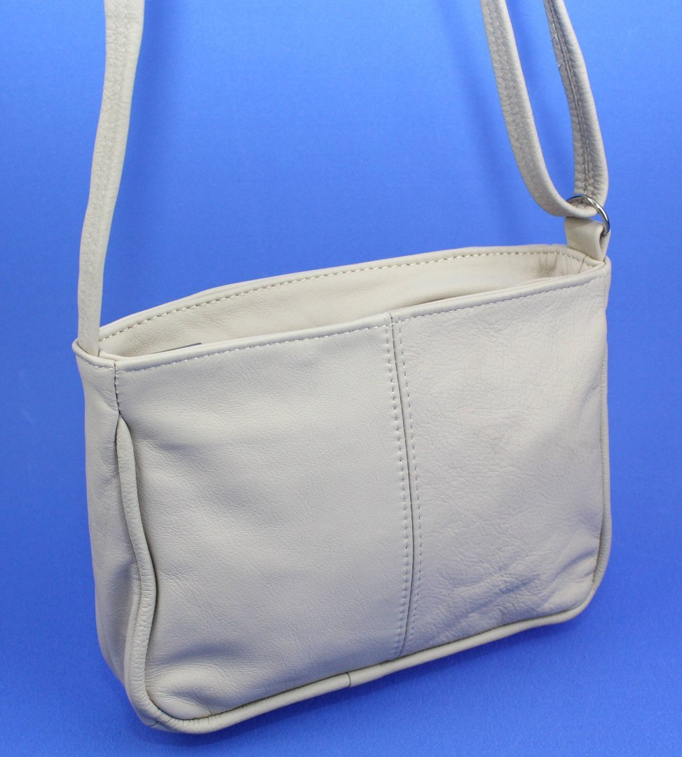 Elegancka, klasyczna torebka Basia została wykonana w całości z naturalnej skóry licowej, farbowanej na kolor Écru. Posiada jedną komorę główną zapinaną na zamek, dwie kieszonki wewnątrz torebki, a także jedną kieszeń umieszczoną z tyłu torebki, również zapinaną na zamek błyskawiczny. Torebka została zaprojektowana w stylu popularnej i niezwykle wygodnej listonoszki. Ponadto, w całości została uszyta w Polsce, co daje gwarancję wysokiej jakości wykonania. Jej wymiary to 22 x 17 centymetrów. Model ten doskonale sprawdza się, jako torebka na codzienne wyjścia z przyjaciółmi lub jako dodatek na bardziej eleganckie okazje. Skórzany pasek z możliwością regulacji długości umożliwia wygodne dopasowanie torebki do swojego wzrostu i upodobań.